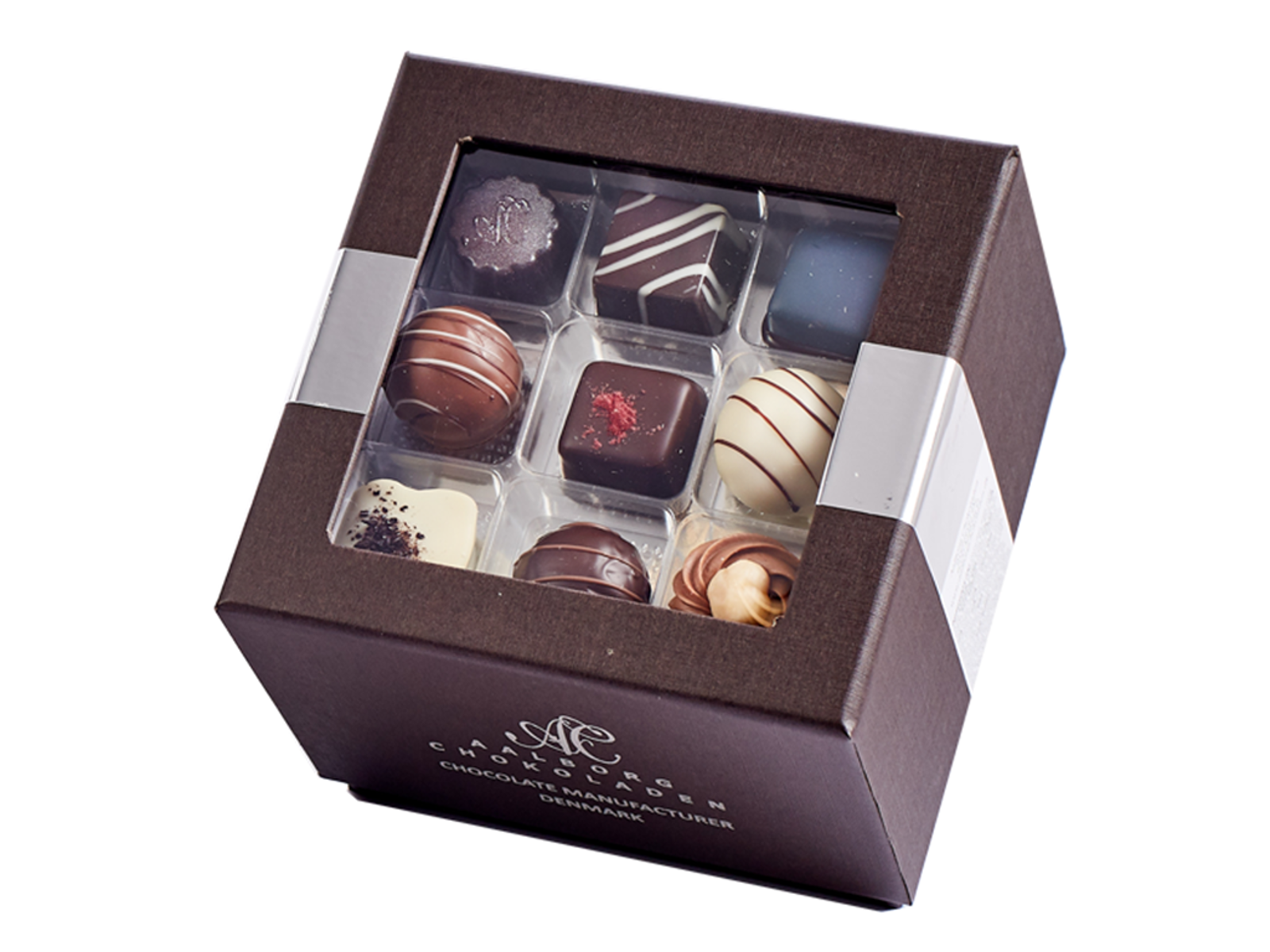 Vores klassisk æske indeholder både et udvalg af dessertstykker, konfekt og trøffelkugler.