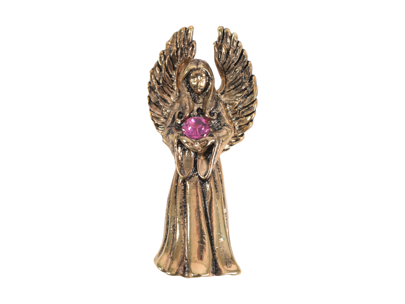 Skytsenglen er belagt med 24 karat guld – sidder flot og diskret å jakken eller trøjen. Den Kraftfulde Engel holder en pink / lyserød zirkonia sten.