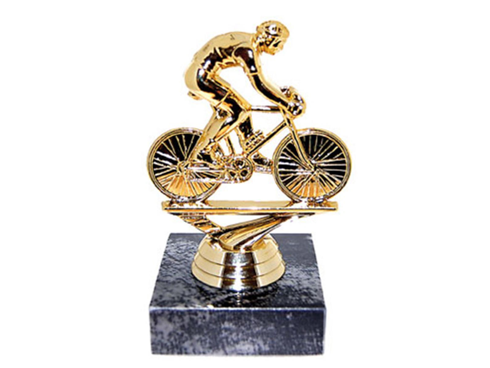 Denne flotte sportsfigur er udformet som en cykelrytter og er dermed målrettet cykelsporten.