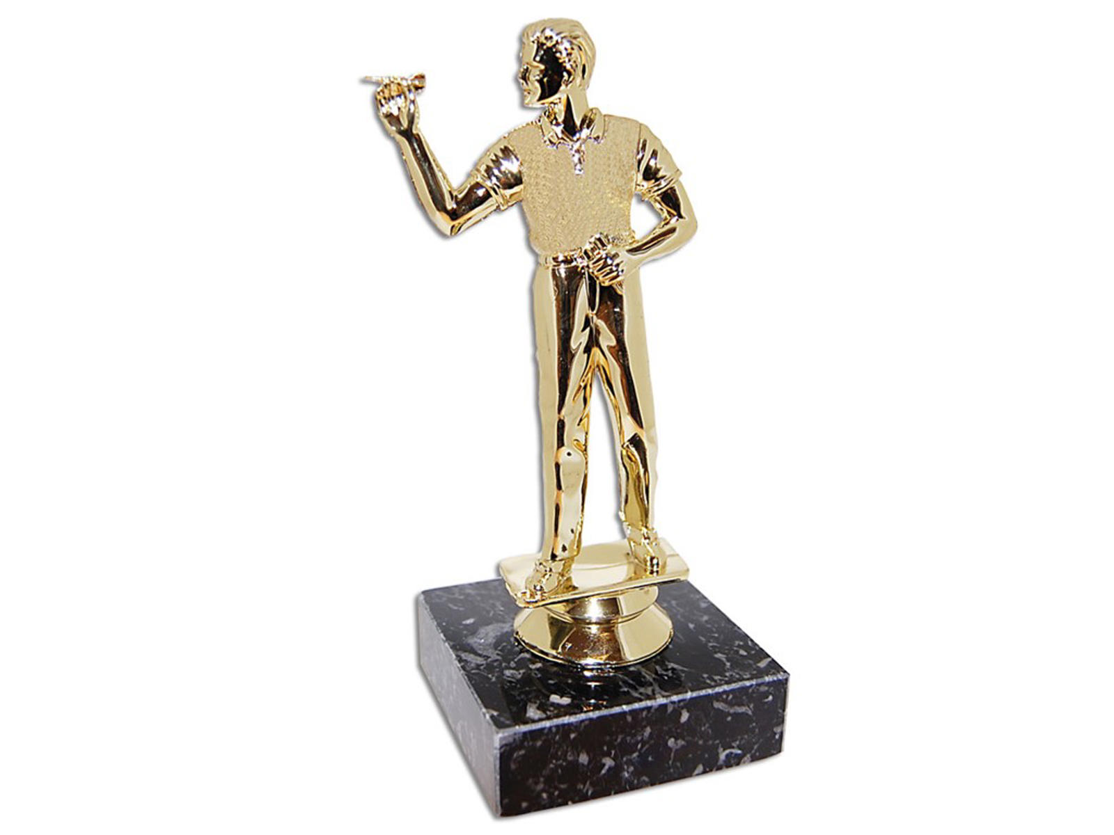 Sportsfiguren forestiller en mandlig dartspiller i aktion. Figuren er perfekt som præmie til næste turnering.