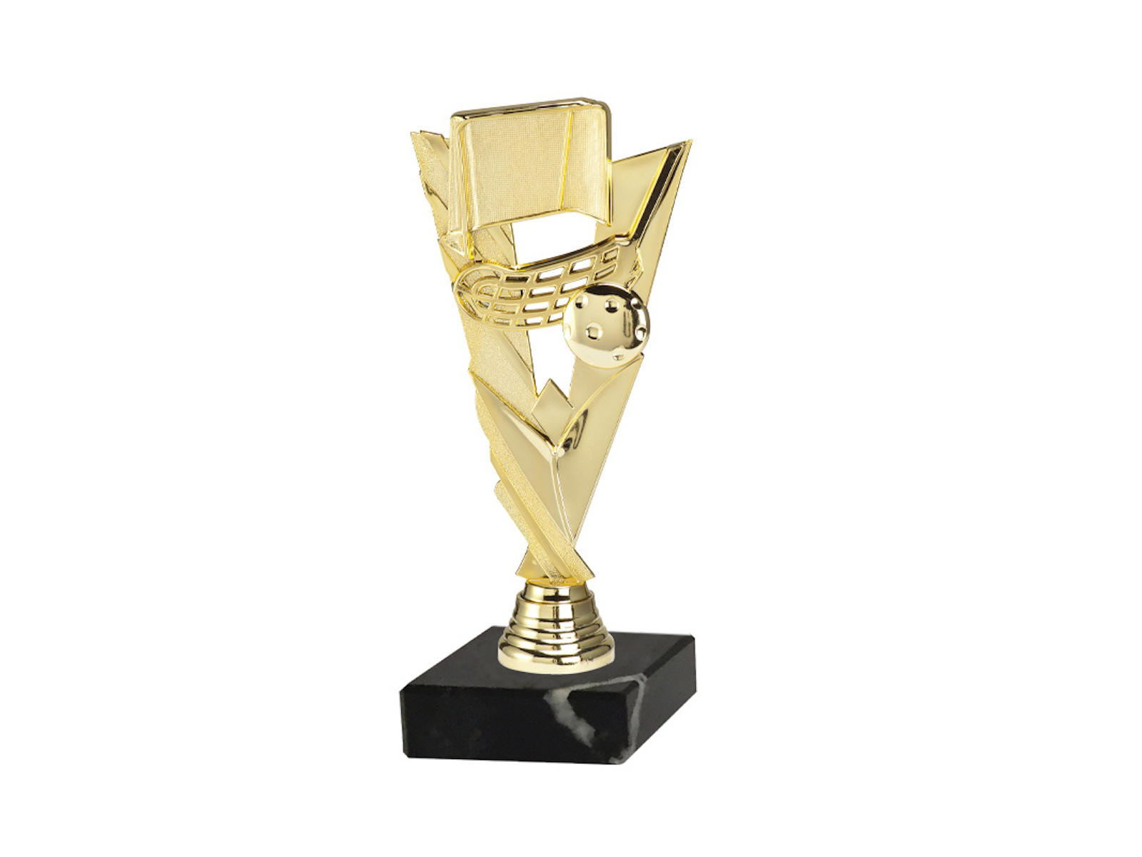 Står du og skal afholde et floorballstævne, så er denne statuette helt ideel. Guldstatuetten måler 210 mm. i højden og står på en sort sokkel, hvor der der kan tilkøbes et sokkelskilt med gravering.