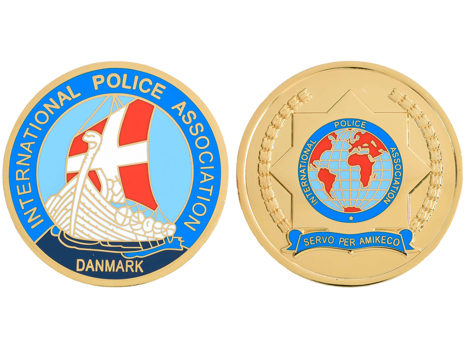 Flot og detaljeret mønt med vikingeskib på den ene side og International Police Association logo på den anden side. Mønten har fine og præcise detaljer både i det forgyldte og i farver, og det er en ideel gave til et stolt IPA medlem. Mønten kommer i et fint etui, hvor den kan opbevares sikkert.