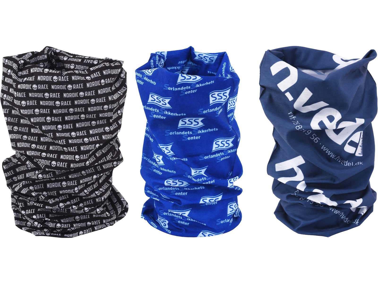 Selve halsedissen måler 25 x 50 cm og du kan vælge designs med op til 3 farver. Den er fremstillet i 130 gms spandex polyester.