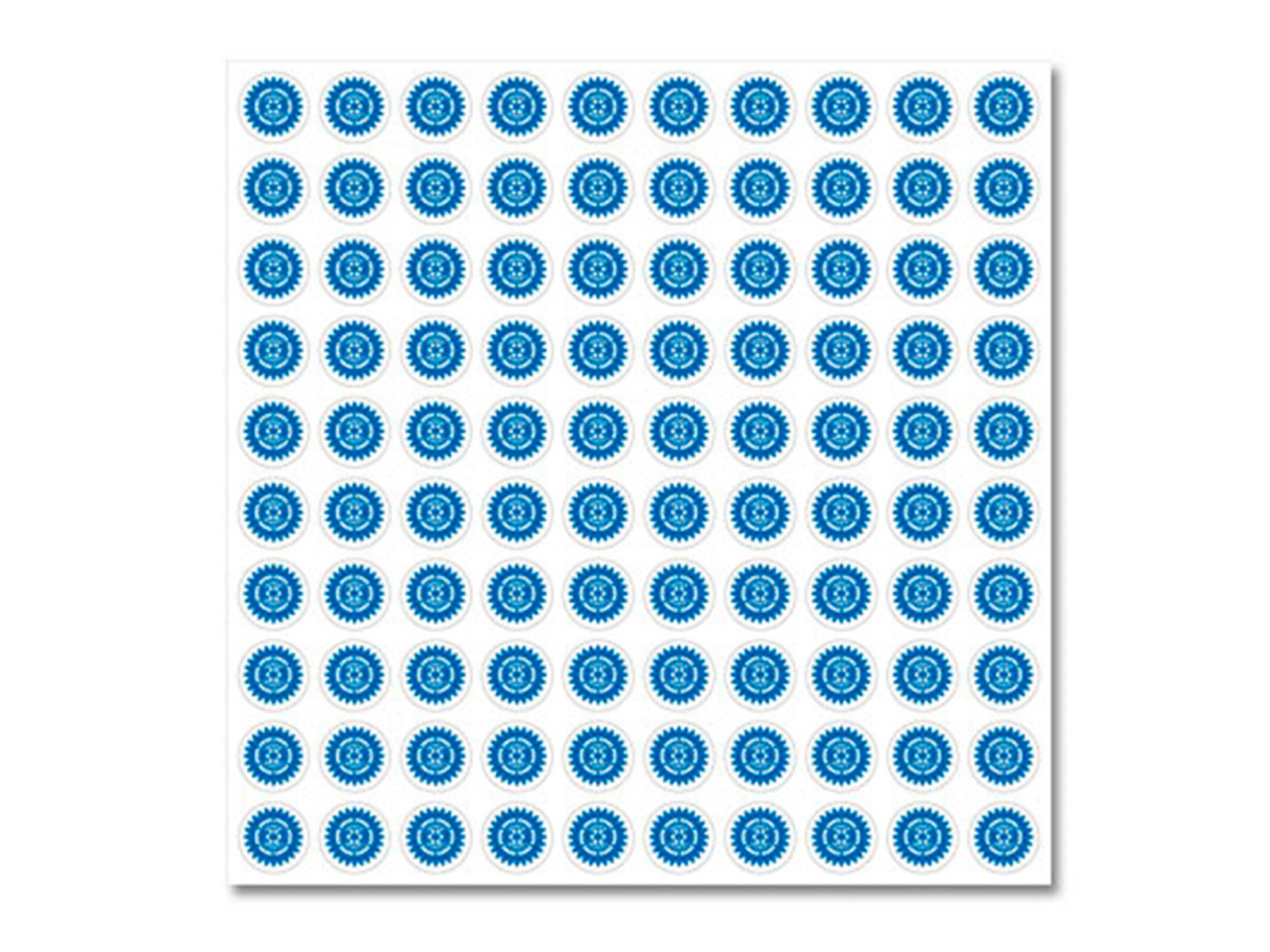 Ark bestående af 100 stk. klistermærker i god kvalitet vinyl, 100 stk á 20 mm. Klistermærkerne består hver især af et Inner Wheel logo i blå.