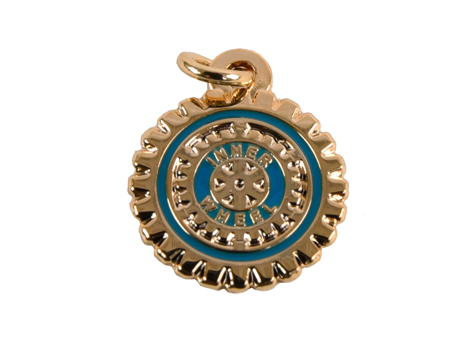 Dette smukke vedhæng med Inner Wheels logo, forgyldt og med emalje, fås i to størrelser - 14 mm og 19 mm. Du vælger hvilken størrelse du ønsker i menuen til højre.