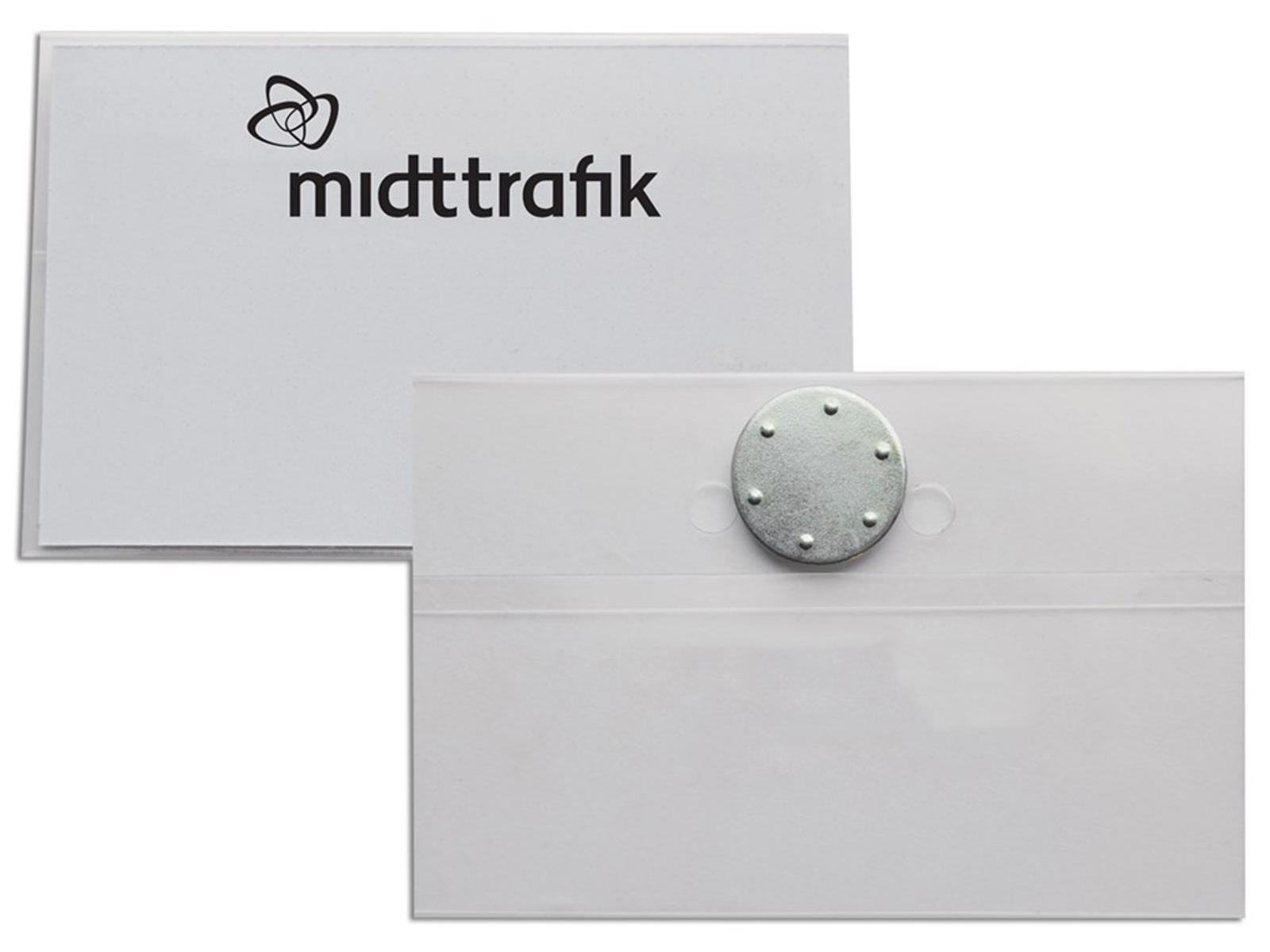 Helt simpelt konferenceskilt med magnet som bagmontering. Ved at have magnet som bagmontering mindskes risikoen for huller i tøjet, og skiltet er i øvrigt nemt at sætte på og tage af igen.