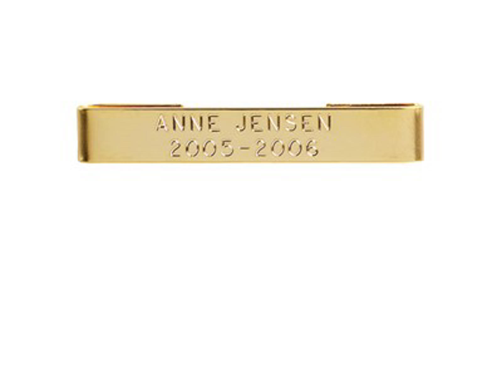 Navnebjælke med ombuk; der er lavet til Ladies Circle præsidentkæden; som du finder her. Prisen er inklusiv gravering - vælg gravering i menuen til højre og angiv efterfølgende den ønskede tekst i feltet nedenunder.