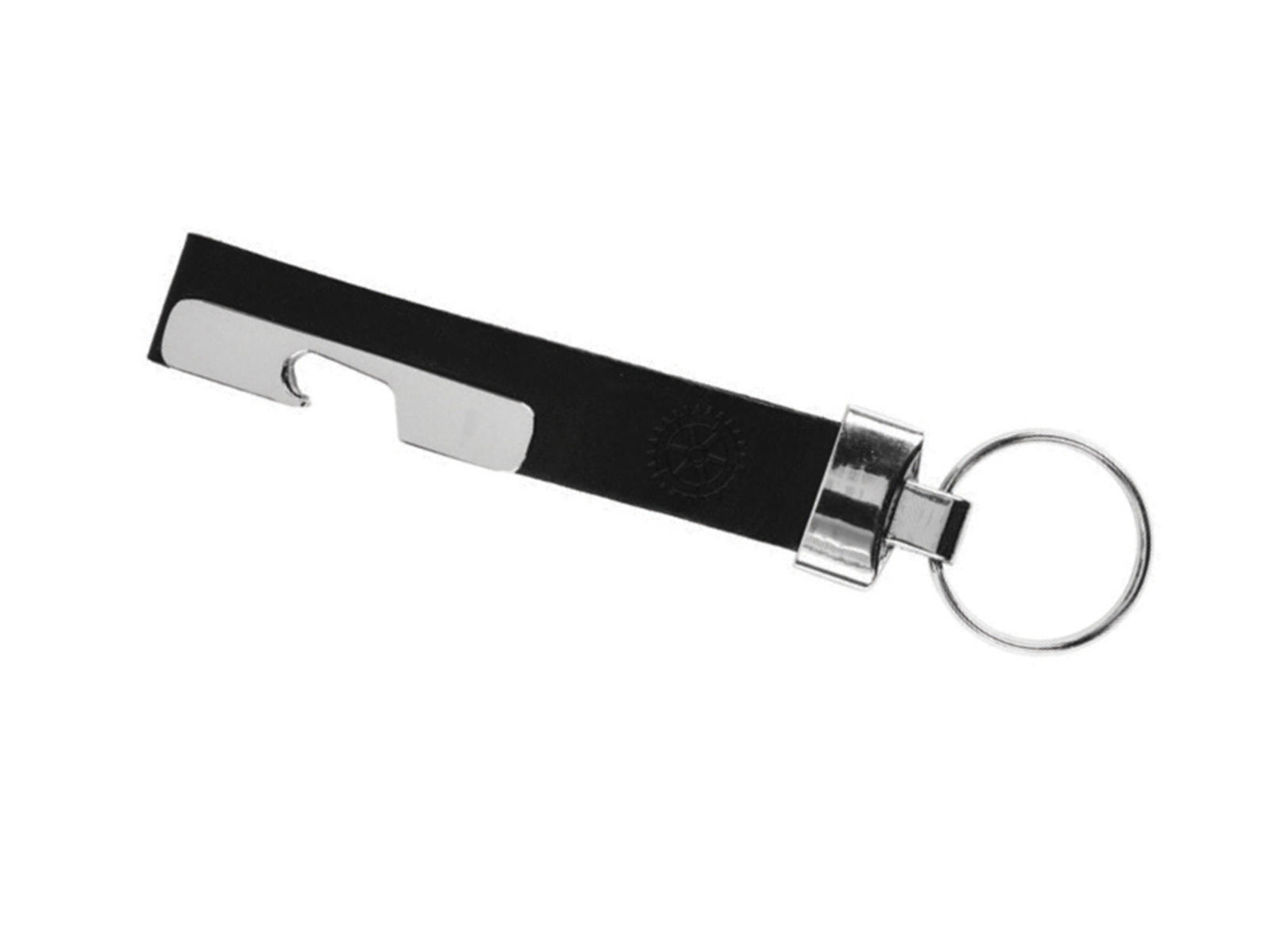Denne nøglering gør det nemt at holde styr på nøglerne, og samtidig har du altid en oplukker ved hånden. Den er fremstillet i læder og har på den ene side får præget et Rotary logo i læderet.