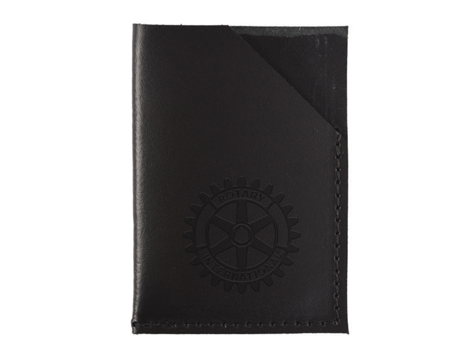 Hold styr på dine visitkort med en holder i læder. Der er på forsiden af holderen præget et Rotary logo i læderet.