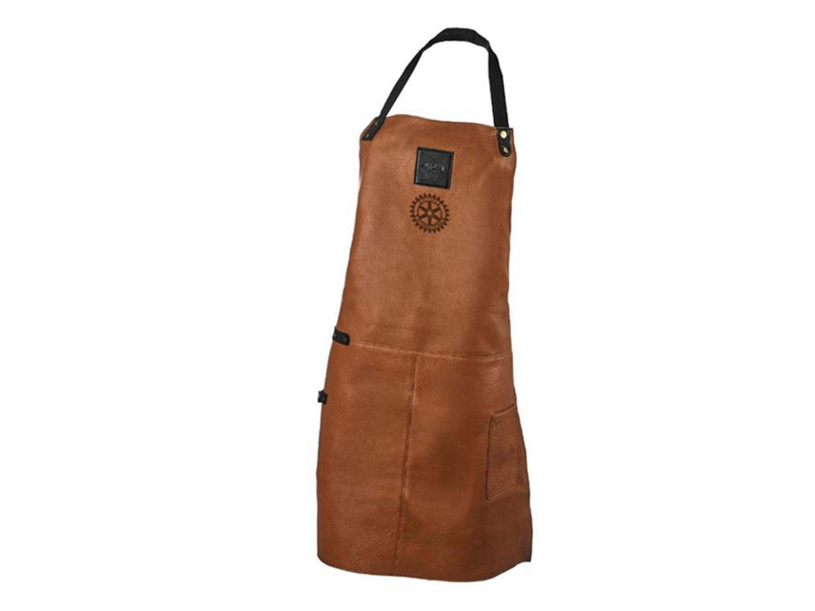 Forklædet er med en lomme foran, f.eks. til en grillhandske eller et viskestykke. Der er på forsiden også præget et Rotary logo på læderet.