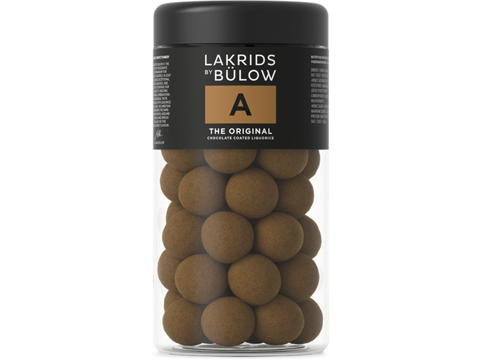 A - THE ORIGINAL var det aller første produkt Johan Bülow skabte, da han fik idéen om at overtrække lakrids med chokolade. Trods skepsis til idéen, så det populære produkt Lakrids A snart dagens lys. Kombinationen af sød lakrids, nøje udvalgt premium mælkechokolade og fint lakridspulver er efter manges udsagn yderst vanedannende.