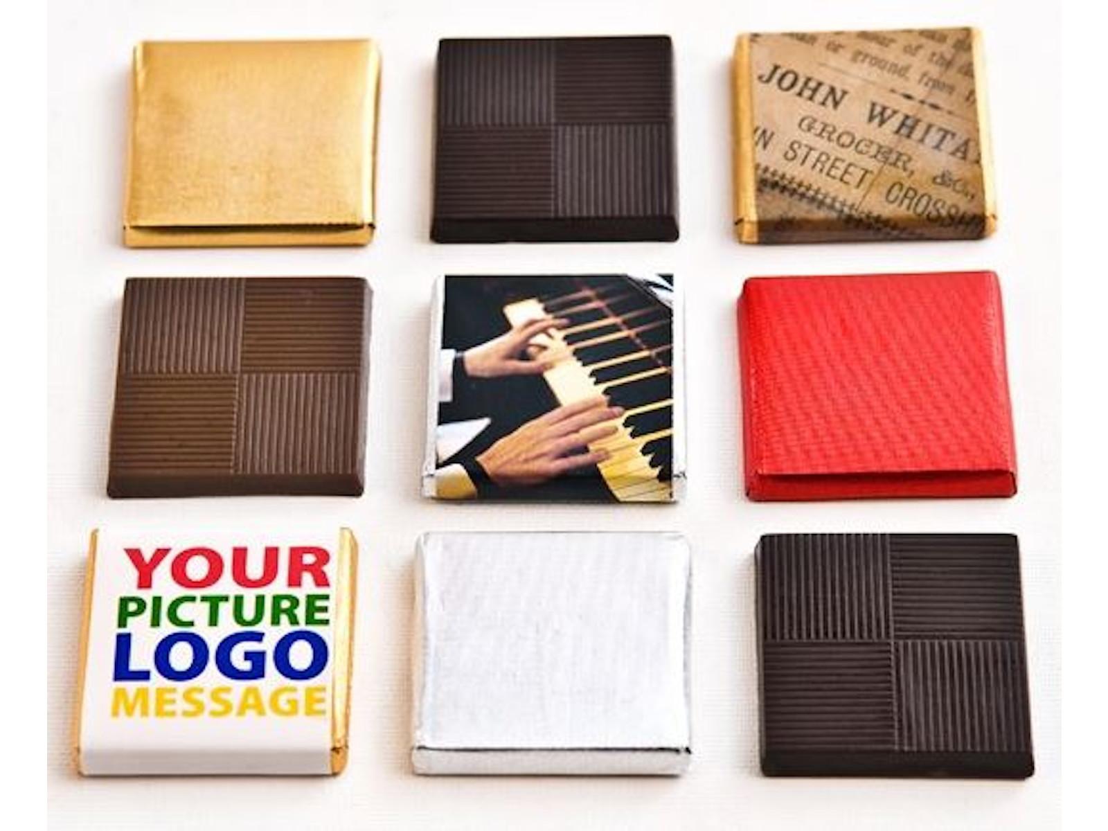 Udbred dit logo og forkæl dine kunder med et lækkert stykke chokolade. Vi leverer to variationer