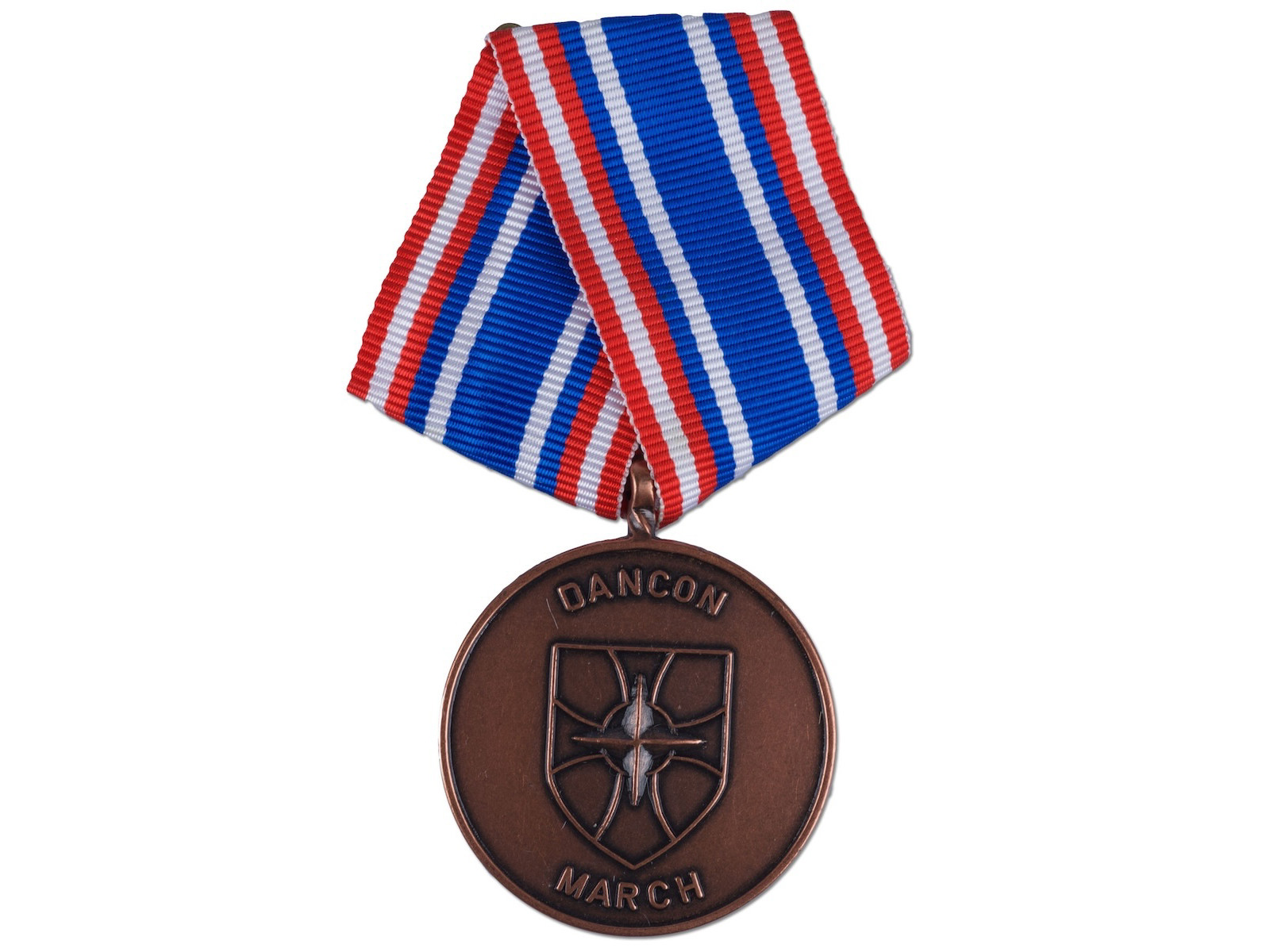 Avers: ‘DANCON / SFOR’ er skrevet øverst på denne side. I midten er et relief med et skjold hvor på NATOs stjerne er afbilledet. Under skjoldet er der skrevet ’March’
