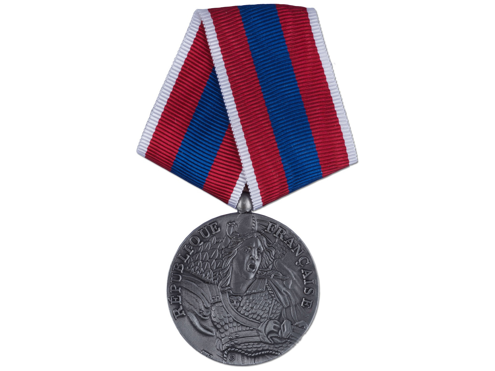 Avers: Teksten ’RÉPUBLIQUE FRANÇAISE’ står øverst. Under er der et relief billede af La Marseillaise.