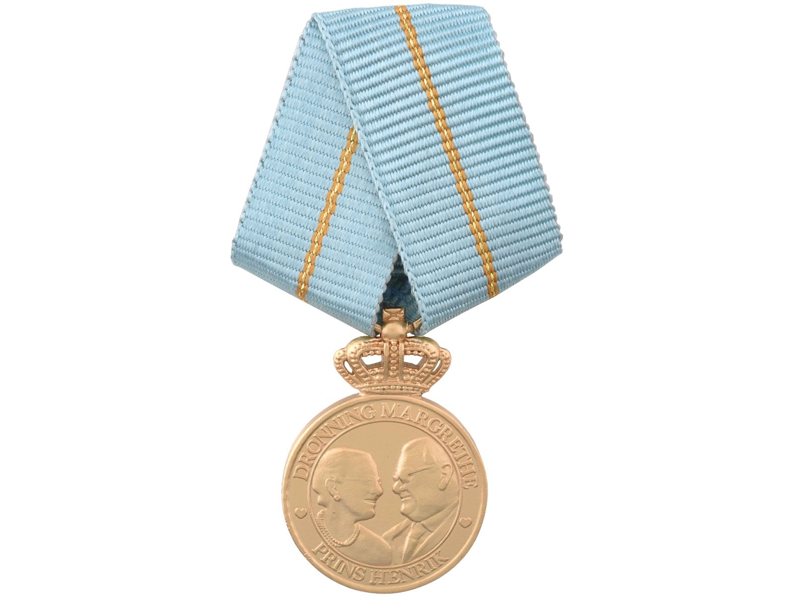 Miniaturemedalje i anledning af Hendes Majestæt Dronning Margrethes og Hans Kongelige Højhed Prins Henriks guldbryllup den 10. juni 2017.