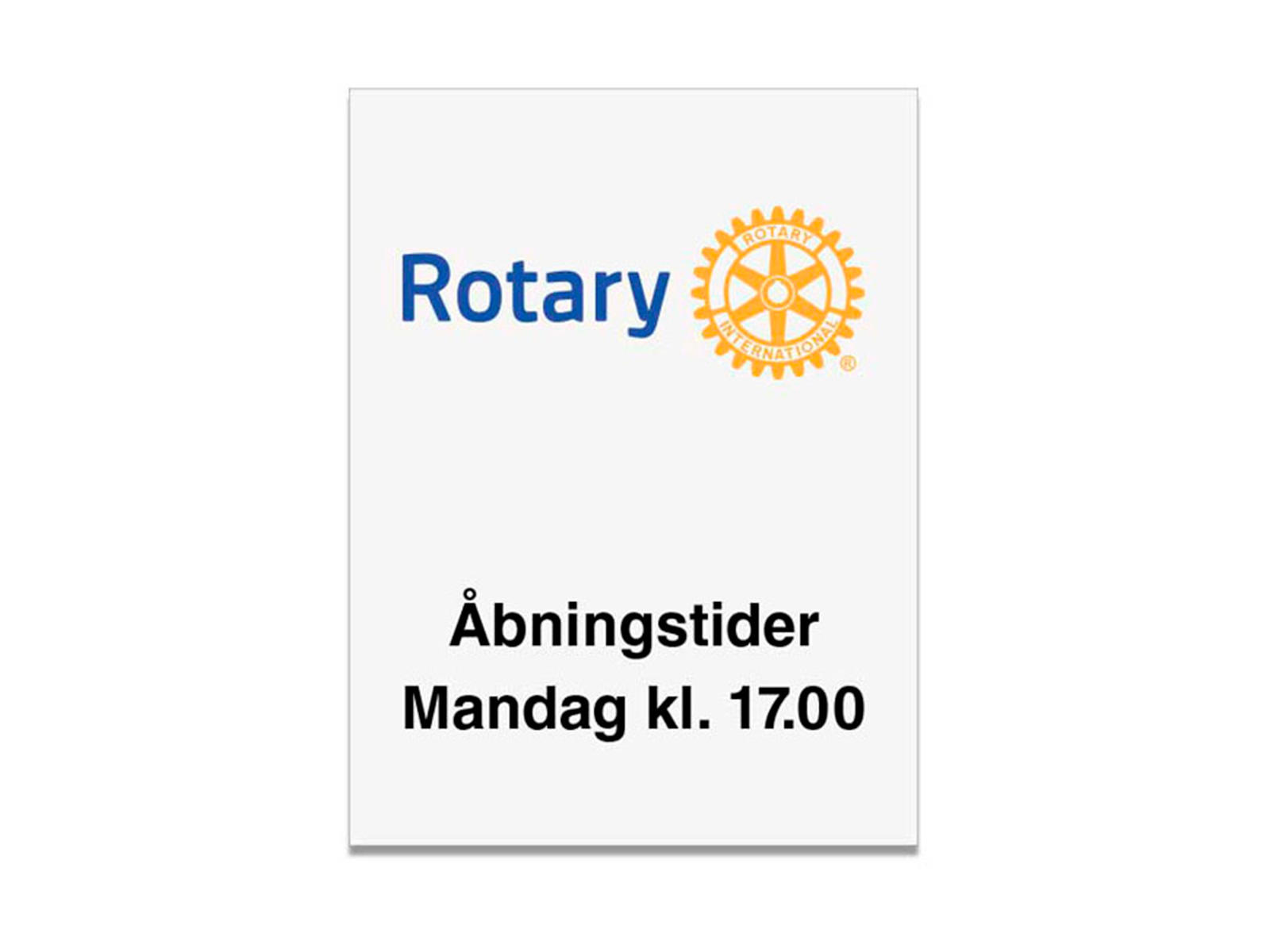 Skilt med Rotary logo i toppen i foreningens farver blå og gul.