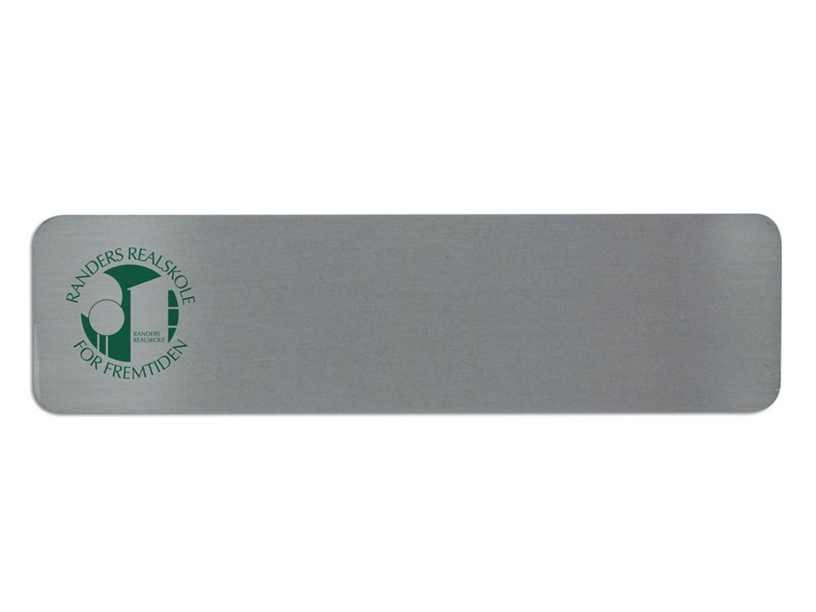 Navneskilt med ekstra længde – så er der ekstra plads til logo og personnavn. Med en længde å 75 mm er dette navneskilt 10 mm længere end vores rektangulære navneskilt i aluminium; hvilket giver flere muligheder og mere fleksibilitet i forhold til tryk på navneskiltet. Med børstet stållook og den slanke form sidder skiltet diskret å tøjet; men præsenterer stadigvæk logo og navn å en elegant måde.