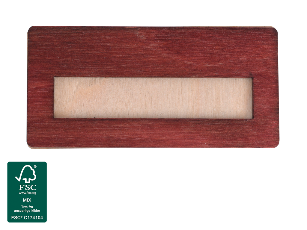 Skift jeres navneskilte i plastik eller metal ud med vores klimavenlige navneskilte i træ. Vores trænavneskilte er nemlig af egetræ, som forarbejdes til finér på specialproduktion Finland, og som herfter sendes til produktion her på fabrikken i Malling.