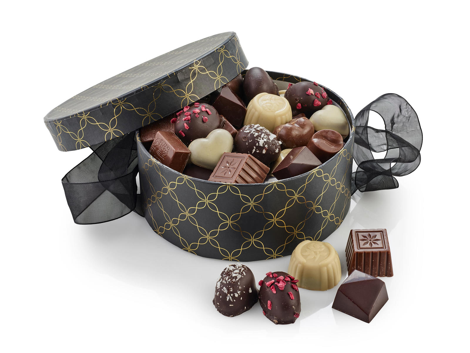 Økologisk familieæske med marcipanæg, cashew m/chokolade, hasselnød m. chokolade og mandlerr m/chokolade - 420g.