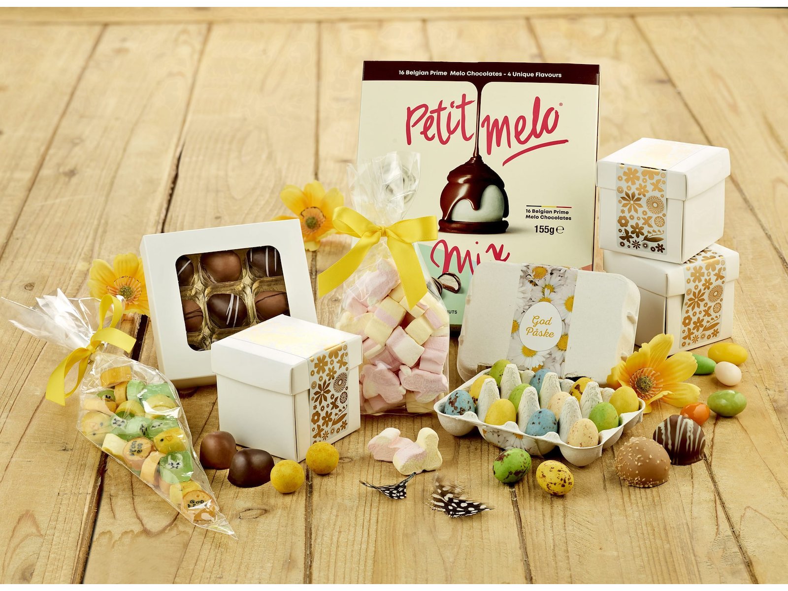 Hvid chokolade, Lakrids, Passionsfrugt, Skum, Marcipan, Bolcher, Mandler, Chokolade