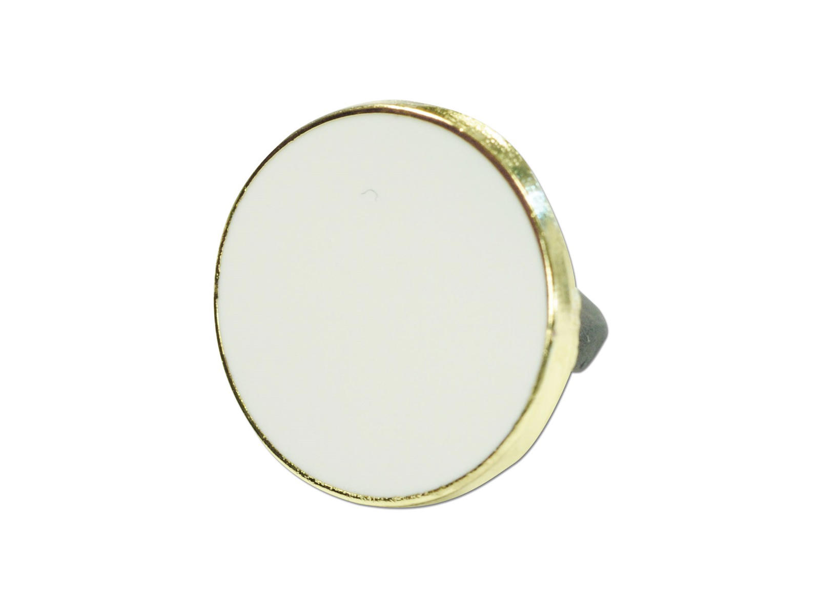 Ideel til dig som gerne vil have en logo pin med et elegant udtryk og med en større trykflade. Med sine 17 mm er denne pin blandt de større logo pins i sortimentet. Med hvid emalje bliver dit logo flot præsenteret og med den gyldne kant får denne pin et elegant udtryk.