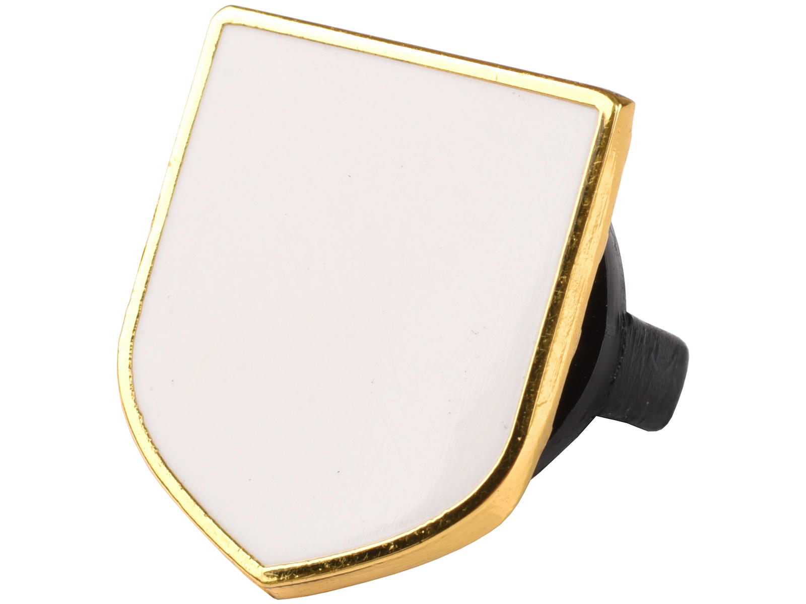 Denne logo pin adskiller sig fra vores øvrige logo pins ved at være formet som et skjold. Den egner sig særligt til våbenskjold; men kan selvfølgelig bruges af alle. Med en højde å 16 mm og bredde å 14 mm har denne pin en størrelse; der giver mulighed for at vise fine detaljer; men uden at den bliver for dominerende å jakken. Den forgyldte kant sætter prikken over i’et.