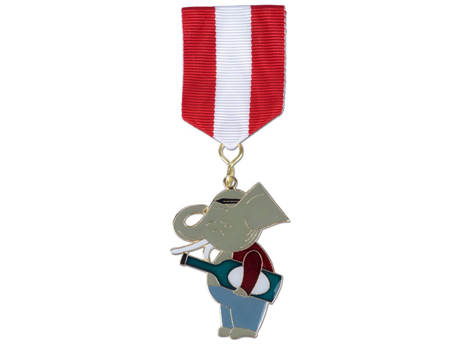 Sjovt emblem med Øllefanten. Tag Øllefanten med til festen, frokosten og overrask venner og familie med et sjovt emblem. Den er også ideel til at pifte dit jakkesæt op til julefrokosten. Dette er en stor model i rød/hvid båndspids. Leveres i en flot gaveæske.
