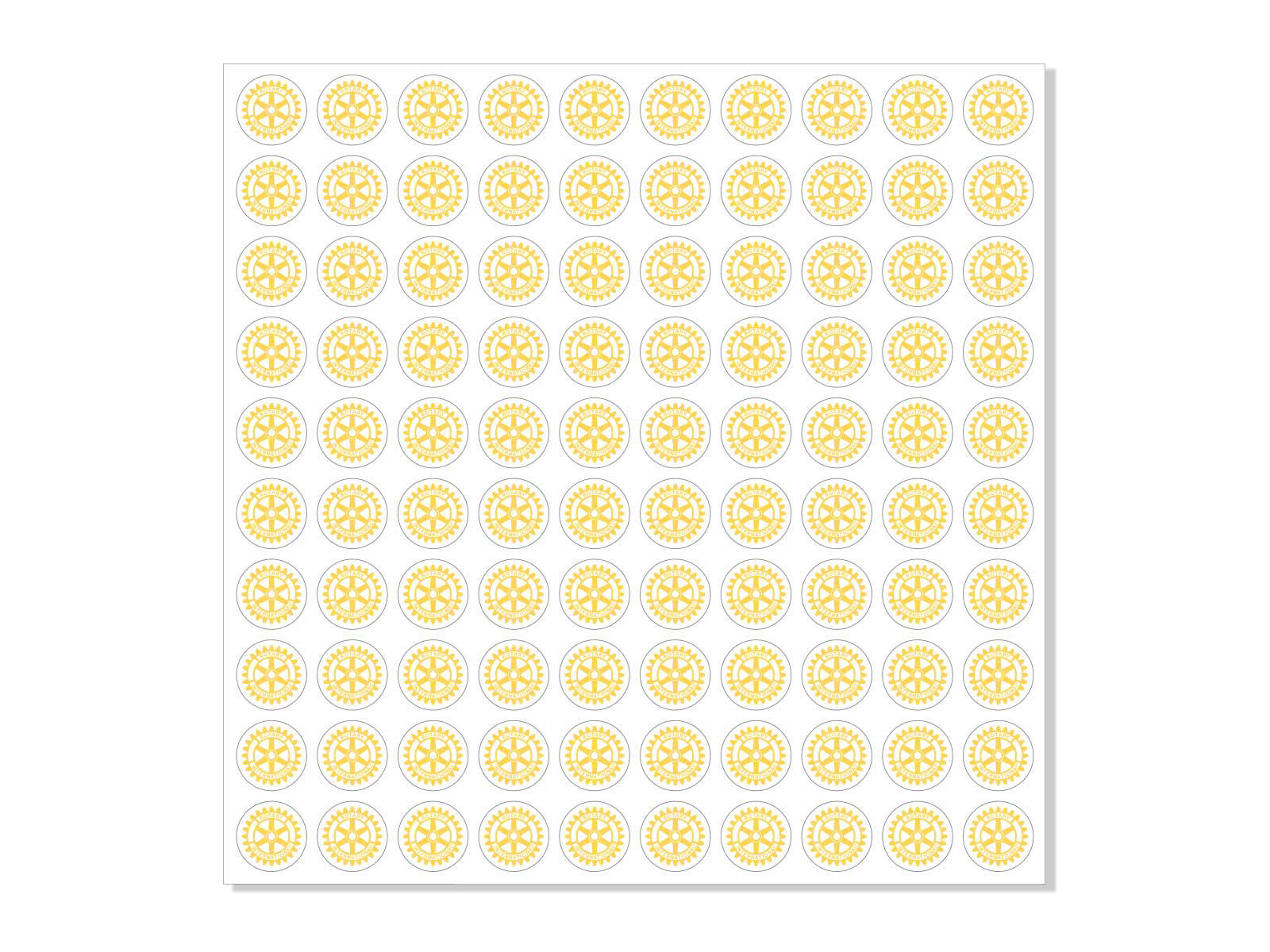 Små Rotary stickers/klistermærke. Leveres med 100 stk. på rulle.