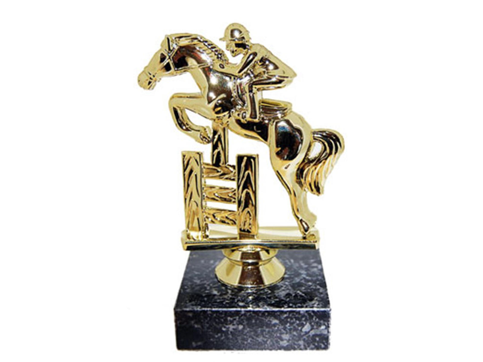 Denne sportsfigur er målrettet ridning pga. dens udformning som hest og rytter. Hest og rytter er i spring og figuren er derfor særlig ideel som præmie til næste springstævne, military eller terrænspringning.