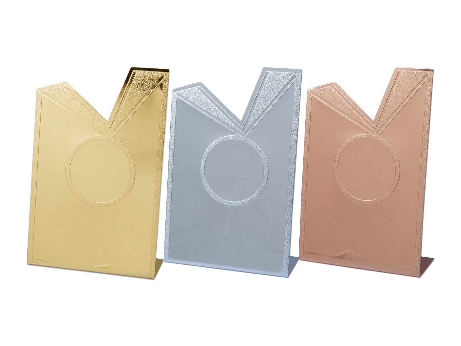 Med en højde på 80 mm og en brede på 50 mm er denne aluminiums statuette ideel til alt fra mindre awards til bordkort.  Det der får denne plakette til at adskille sig fra de øvrige aluminiums statuetter er at denne har aftegning af en medalje. Plaketten her kan derfor med fordel også bruges til sportsbegivenheder i stedet for en medalje.