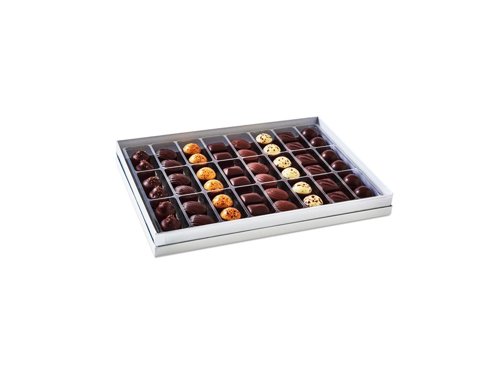 Gaveæsken indeholder i alt 48 stk. chokolade.