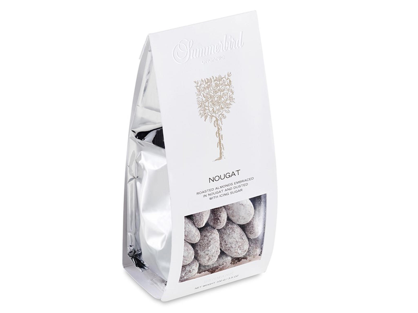Let ristede spanske mandler, drageret med et tyndt lag nougat og mælkechokolade og afslutningsvis vendt i fnuglet florsukker. En Summerbird-klassiker, hvor råvaren, håndværket og traditionerne spiller hovedrollen.