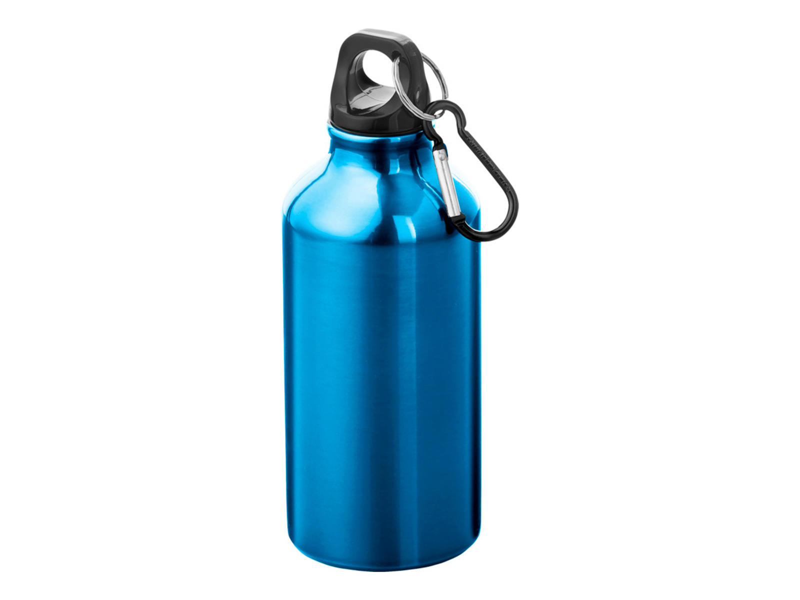 Oregon drikkeflaske med karabinhage. Flasken er enkeltvægget og med skruelåg. Karabinhagen er uegnet som klatreudstyr. Rumindholdet er 400 ml, og flasken er lavet i BPA fri aluminium.