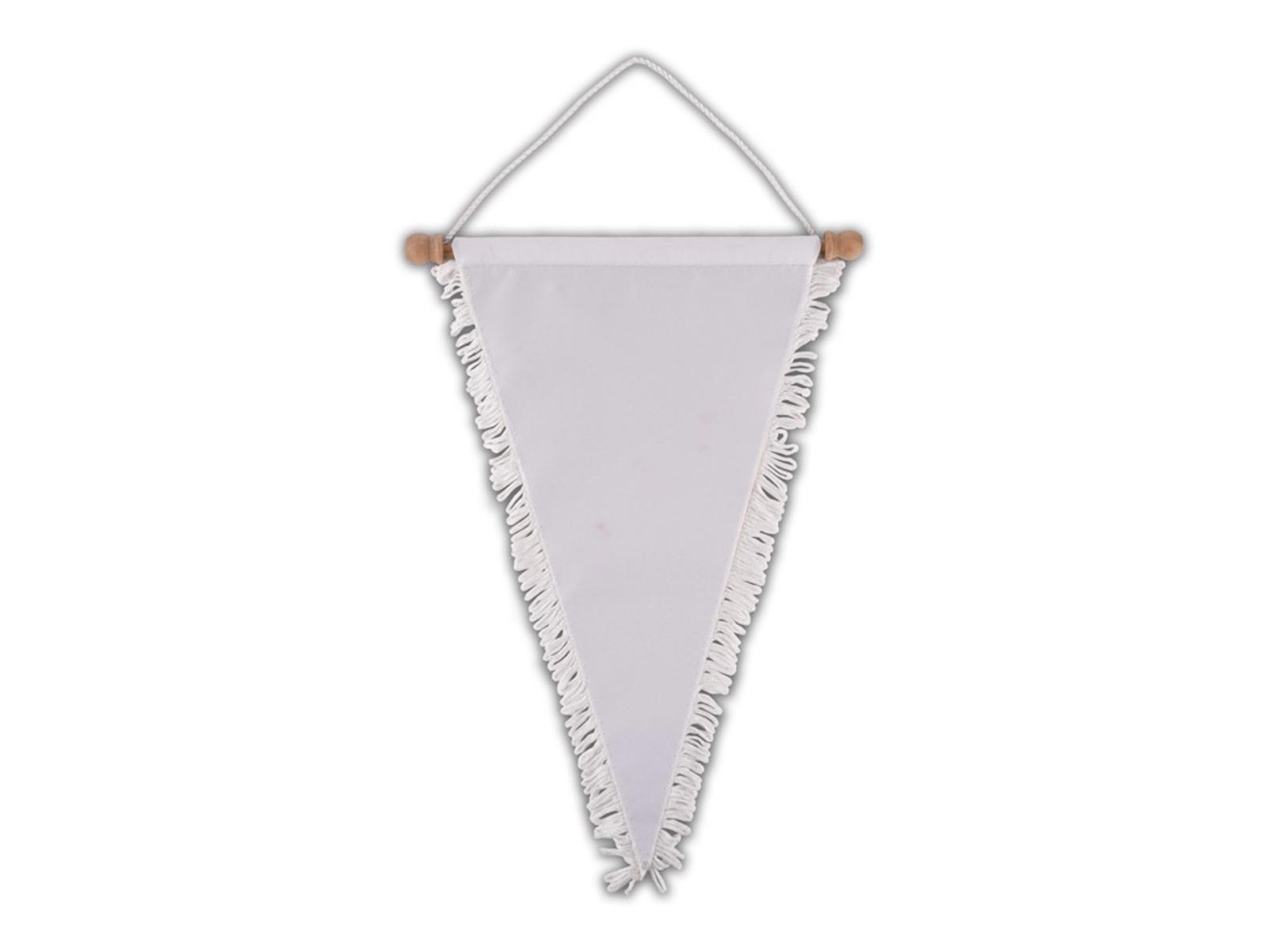 Vimplen er til dig som gerne vil have ekstra fokus på logoet. Med de hvide frynser er denne vimpel meget neutral og fryserne tager ikke fokus fra motivet som bliver trykt på vimplen.