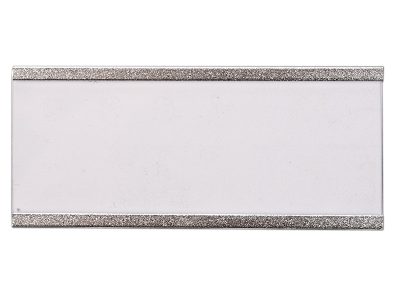 Selve navneskiltet har en bredde på 72 mm og en højde på 31 mm, mens ruden hvor papirindlægget indsættes har en brede 72 mm og en højde på 26 højde.